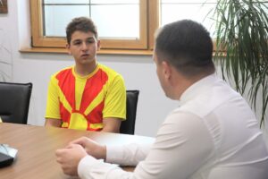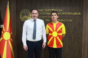 Министерот за дигитална трансформација, Стефан Андоновски, денеска го прими на средба младиот информатичар Владимир Грчев, кој неодамна го освои златниот медал на Европската олимпијада по информатика за млади (EJOI), која се одржа во Шумен, Бугарија.